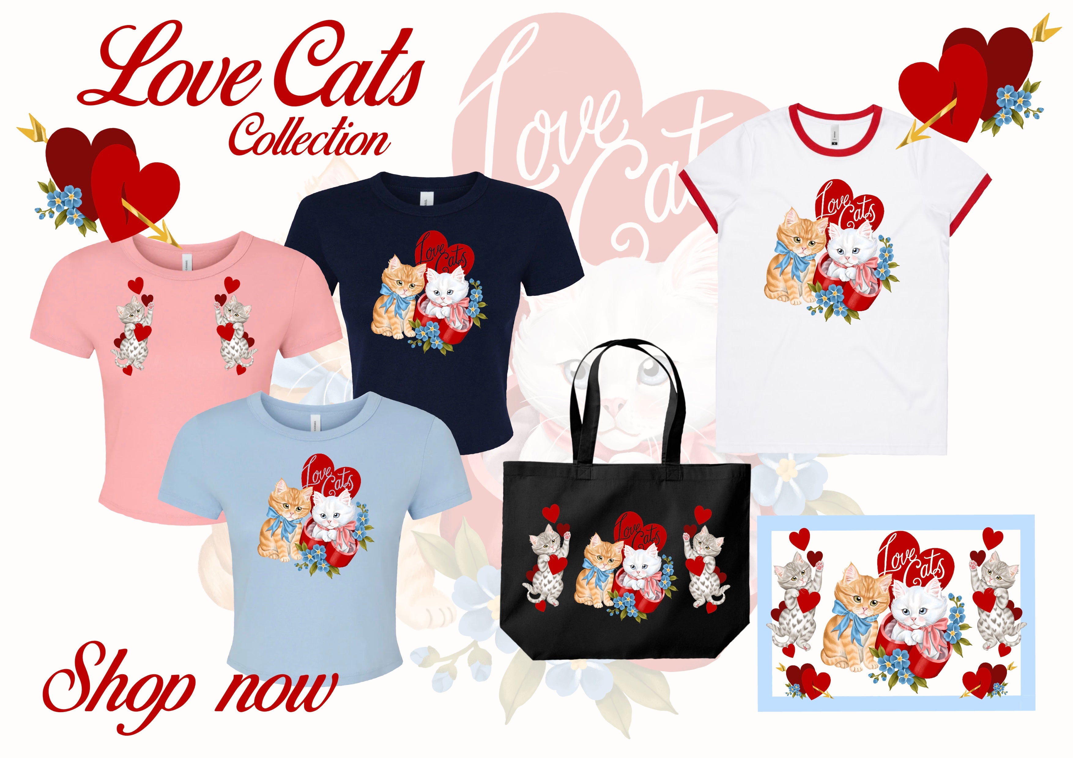 PRE ORDER - Love Cats Baby Tee - Light Blue